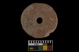 | Description / विवरण | Handmade disc of terracotta, circular in shape, centrally perforated, well fired. |