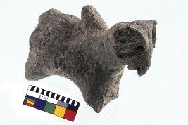 | Description / विवरण | Handmade bull figurine with prominent hump,tapering broken legs,ears are broken, pointed curved inward mouth, broken tail, well fired |