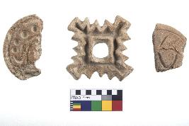 | Description / विवरण | All are decorative pieces with engravings of loops, circles, incised lines, beautiful criss cross pattern, one has centric perforation. |