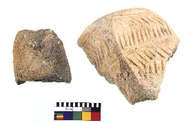 | Description / विवरण | Elongated seal stamp with cross design and leaf pattern design,well fired, |