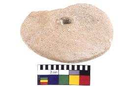 | Description / विवरण | Wheel with circular shape, centerlly perforated, flat base, well fired |
