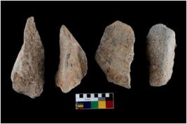 | Description / विवरण | There are n 4 utilized flakes. There are multi directional irregular scar pattern on both dorsal and ventral face of the flakes. Two are tapering at one end and two have pointed edges. |