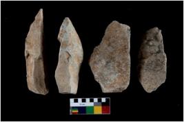 | Description / विवरण | There are n 4 utilized flakes. There are multi directional irregular scar pattern on both dorsal and ventral face of the flakes. Two are pointed at one end and two have tapered edges. |