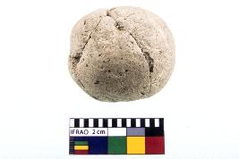 | Description / विवरण | Circular in shape with rough surface, vertical lines on surface |