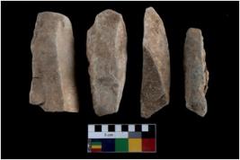 | Description / विवरण | There are n 4 utilized flakes. There are multi directional irregular scar pattern on both dorsal and ventral face of the flakes. Two are pointed at one end and two have blunted edges. |