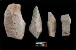 | Description / विवरण | There are n 4 utilized flakes. There are multi directional irregular scar pattern on both dorsal and ventral face of the flakes. Three are tapering at one end and one is sharp edge. |