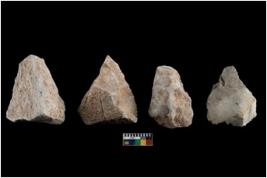 | Description / विवरण | There are n 4 utilized flakes. There are multi directional irregular scar pattern on both dorsal and ventral face of the flakes. three are tapering at one end and one has blunted edge. |