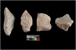 | Description / विवरण | There are n 4 utilized flakes. There are multi directional irregular scar pattern on both dorsal and ventral face of the flakes. three are sharp at one end and one has pointed edge. |