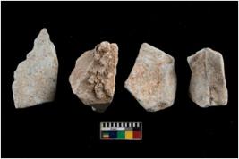 | Description / विवरण | There are n 4 utilized flakes. There are multi directional irregular scar pattern on both dorsal and ventral face of the flakes. Two are tapering at one end and two have sharp edges. |