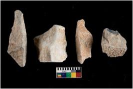 | Description / विवरण | There are n 4 utilized flakes. There are multi directional irregular scar pattern on both dorsal and ventral face of the flakes. Two are tapering at one end and two have sharp edges. |