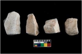 | Description / विवरण | There are n 4 utilized flakes. There are multi directional irregular scar pattern on both dorsal and ventral face of the flakes. one has tapering at one end and one has blunted, and two are sharp edges. |