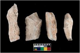 | Description / विवरण | There are n 4 utilized flakes. There are multi directional irregular scar pattern on both dorsal and ventral face of the flakes. Two are pointed at one end and one has sharp edge, and one has blunted edge. |