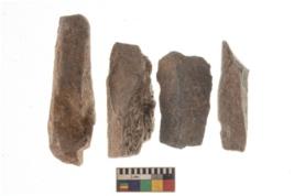 | Description / विवरण | There are n 4 utilized flakes. There are multi directional irregular scar pattern on both dorsal and ventral face of the flakes. Three are blunt at one end and one has pointed edge. |