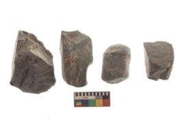 | Description / विवरण | There are n 4 utilized flakes. There are multi directional irregular scar pattern on both dorsal and ventral face of the flakes. Two are tapering at one end and two have blunted edges. |