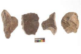 | Description / विवरण | There are n 4 utilized flakes. There are multi directional irregular scar pattern on both dorsal and ventral face of the flakes. Two are tapering at one end and two have sharp edges. |