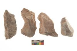 | Description / विवरण | There are n 4 utilized flakes. There are multi directional irregular scar pattern on both dorsal and ventral face of the flakes. Three are tapering at one end and one has blunted edge. |