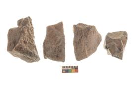 | Description / विवरण | There are n 4 utilized flakes. There are multi directional irregular scar pattern on both dorsal and ventral face of the flakes. Three are tapering at one end and one is sharp edge. |
