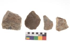 | Description / विवरण | There are n 4 utilized flakes. There are multi directional irregular scar pattern on both dorsal and ventral face of the flakes. Two are tapering at one end and two have sharp edges. |