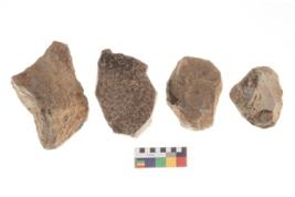 | Description / विवरण | There are n 4 utilized flakes. There are multi directional irregular scar pattern on both dorsal and ventral face of the flakes. three are tapering at one end and one has sharp edge. |
