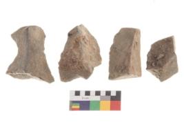 | Description / विवरण | There are n 4 utilized flakes. There are multi directional irregular scar pattern on both dorsal and ventral face of the flakes. three are tapering at one end, and one has sharp edge. |
