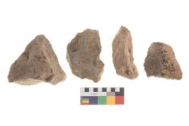 | Description / विवरण | There are n 4 utilized flakes. There are multi directional irregular scar pattern on both dorsal and ventral face of the flakes. Two are tapering at one end and two have sharp edges. |