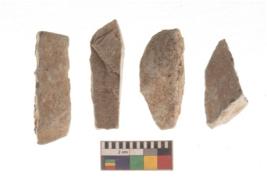 | Description / विवरण | There are n 4 utilized flakes. There are multi directional irregular scar pattern on both dorsal and ventral face of the flakes. three are tapering at one end and one is blunted edge. |