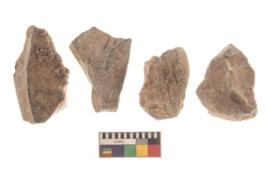 | Description / विवरण | There are n 4 utilized flakes. There are multi directional irregular scar pattern on both dorsal and ventral face of the flakes. three are tapering at one end and one has blunted edge. |