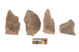 | Description / विवरण | There are n 4 utilized flakes. There are multi directional irregular scar pattern on both dorsal and ventral face of the flakes. Two are tapering at one end and two have blunted edges. |
