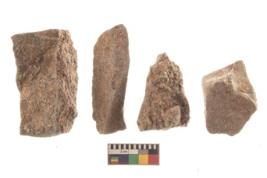| Description / विवरण | There are n 4 utilized flakes. There are multi directional irregular scar pattern on both dorsal and ventral face of the flakes. three are tapering at one end and one has blunted edge. |