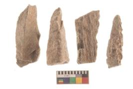 | Description / विवरण | There are n 4 utilized flakes. There are multi directional irregular scar pattern on both dorsal and ventral face of the flakes. three are tapering at one end and one has blunted edge. |