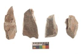 | Description / विवरण | There are n 4 utilized flakes. There are multi directional irregular scar pattern on both dorsal and ventral face of the flakes. three are tapering at one end and one has blunted edge. |