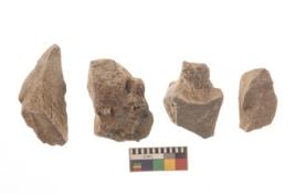 | Description / विवरण | There are n 4 utilized flakes. There are multi directional irregular scar pattern on both dorsal and ventral face of the flakes. three are tapering at one end and one has blunted edge. |