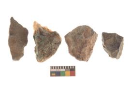 | Description / विवरण | There are n 4 utilized flakes. There are multi directional irregular scar pattern on both dorsal and ventral face of the flakes. Two are tapering at one end and two have sharp edge. |