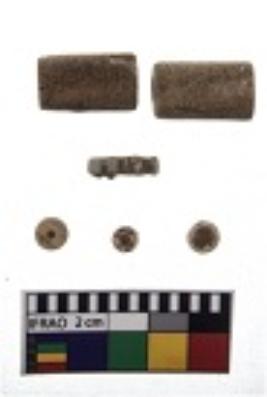 | Description / विवरण | 6 beads ofshell three are circular in shape two are of cylinderical in shape, one segmented bead with centerlly perforated |
