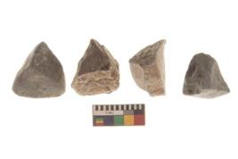 | Description / विवरण | There are n 4 utilized flakes. There are multi directional irregular scar pattern on both dorsal and ventral face of the flakes. Two are tapering at one end and two have flat base edges. |