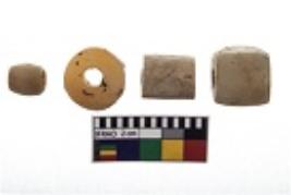 | Description / विवरण | 4 beads of steatite one circular, one cornerless cube bead, one cylinderical, one ellipsoid shaped with centerlly perforated |