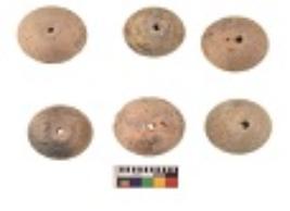 | Description / विवरण | Specimens of six areca nut shaped beads which are centerlly perforated, flat base |