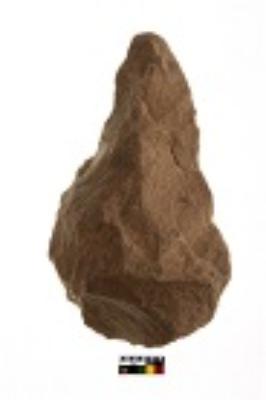 | Description / विवरण | Specimen of pear shaped handaxe with worked butt, tapering towards tip, small flaking has been done |