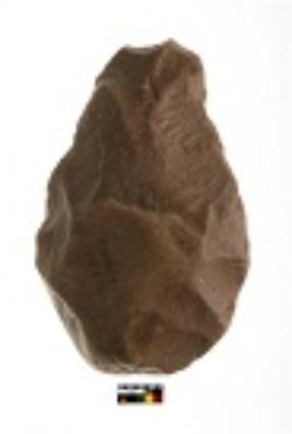 | Description / विवरण | Specimen of handaxe with round butt,bold and small flaking has been done, smooth surface, tip has been broken |