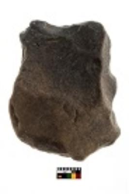 | Description / विवरण | Specimen of unfinished scraper, left side has been untouched while right side has flak escars |