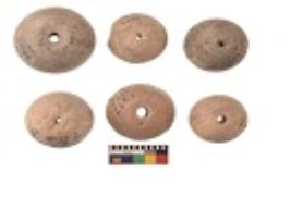 | Description / विवरण | Specimens of six areca nut shaped beads which are centerlly perforated, flat base |
