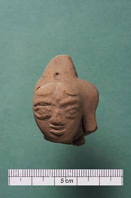 | Description / विवरण | Terracotta head. Right ear lost. There is a stump above head. |