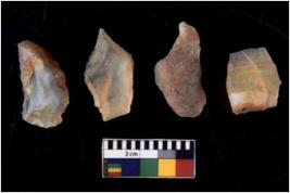 | Description / विवरण | There are n 4 of utilized worked cores and have multidirectional irregular scar pattern. Three are tapering at one end. |