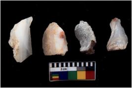 | Description / विवरण | There are n 4 of utilized worked cores and have irregular dominant scar pattern. They have a broken tip. |