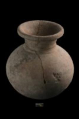 | Description / विवरण | A globular pot with corrugated medium neck and a round base. |
