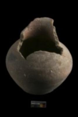 | Description / विवरण | A medium neck globular pot with flat base. A red color slip is treated on the exterior and interior upto throat. |