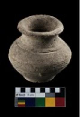 | Description / विवरण | A miniature, medium neck globular pot having a disc base. Surface treatement is absent. |
