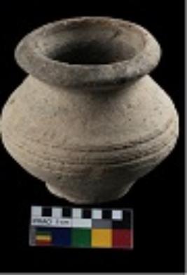 | Description / विवरण | A miniature, constricted neck globular pot having a disc base. A red color slip is treated on the exterior |