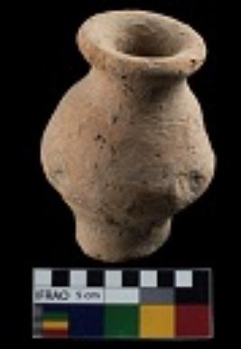 | Description / विवरण | A handmade miniature globular pot having a disc base. Surface treatemnet is absent. |