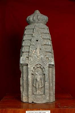 | Description / विवरण | A miniature sarvatobhadrika shrine with a depiction of a tirthankara on each of the four sides. Parsvanatha with a serpent hood on the first side, an unidentifiable tirthankara on the second, probably Chandraprabha on the third identifiable by the cresent |